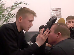 Boy licking masters stinky alpha feet
